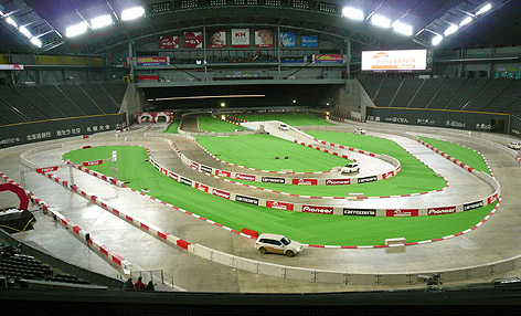 NZの時のSS(スペシャルステージ)は屋外でもっと広くてダートだったけど、こういうのも面白いかもww
